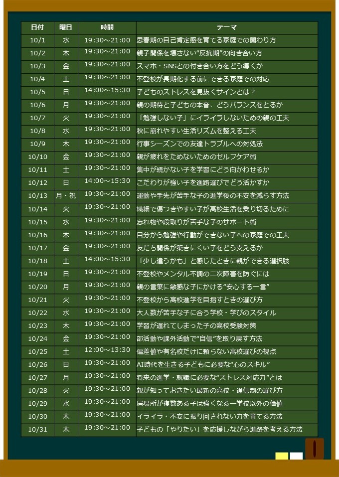 ・中高生の保護者向けに特化した内容